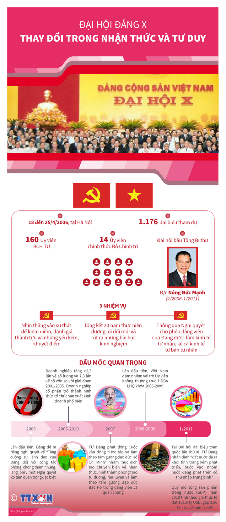 Đại hội Đại biểu toàn quốc lần thứ X của Đảng diễn ra từ ngày 18 đến ngày 25/4/2006 tại thủ đô Hà Nội. Đồng chí Nông Đức Mạnh được bầu lại làm Tổng Bí thư.