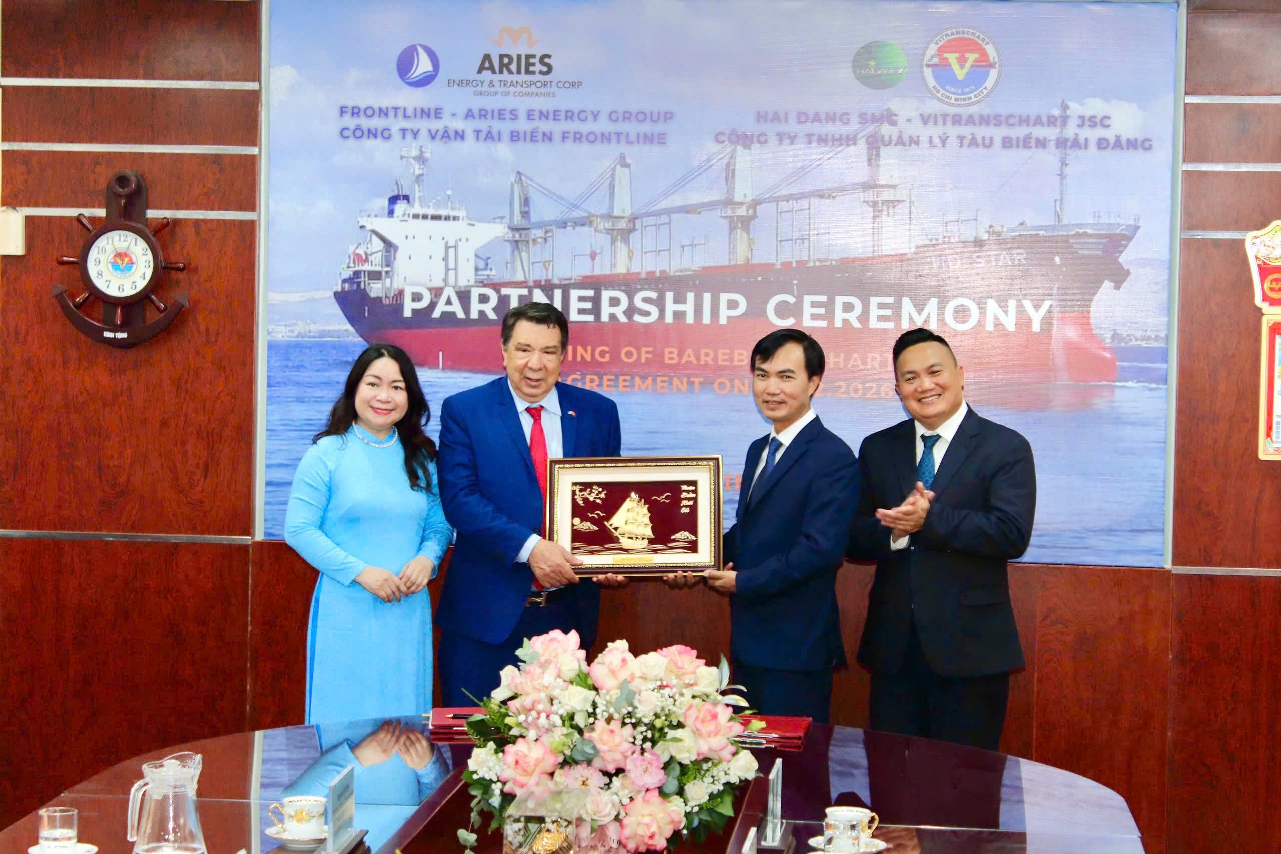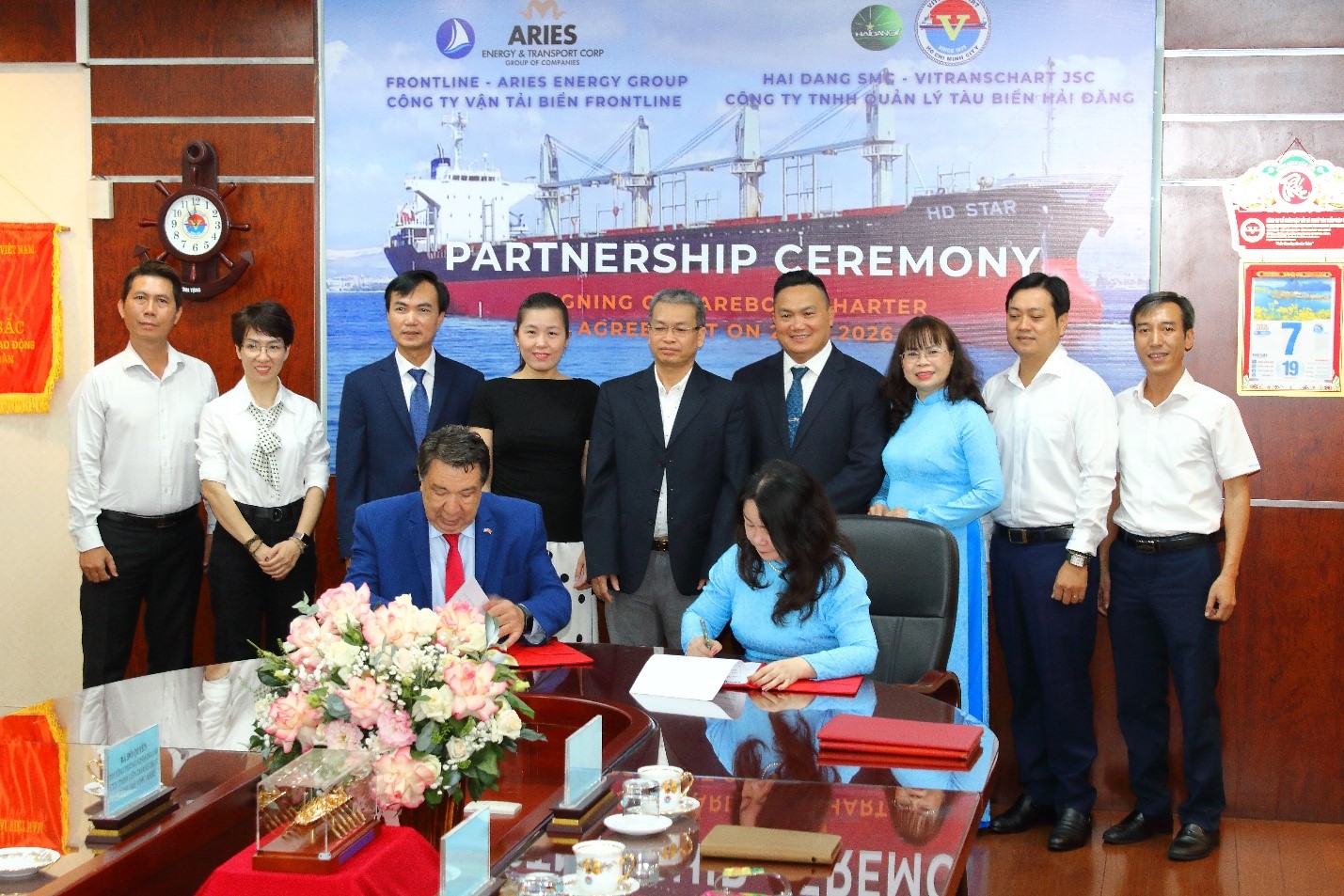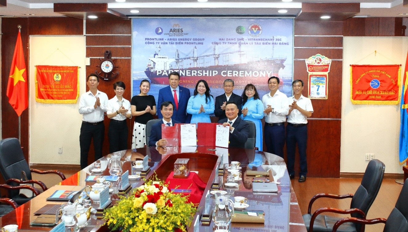 After nearly two months of active discussions and negotiations, the parties reached an agreement on the cooperation framework and officially signed the ship investment contract between Hai Dang SMC, a member company of Vitranschart, and FrontLine, a company under Aries Energy Group (Greece).