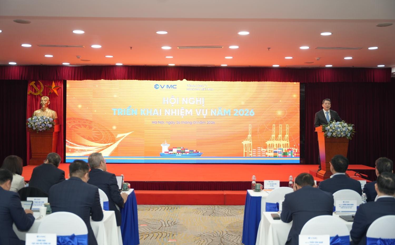 Thứ trưởng Bộ Tài chính đề nghị VIMC tiếp tục phát huy kết quả đạt được để tạo bứt phá ngay trong năm 2026, hướng tới mục tiêu tăng trưởng hai con số; từng bước xây dựng Tổng công ty trở thành tập đoàn hàng hải hàng đầu khu vực, với hệ sinh thái cảng biển – vận tải biển – logistics tích hợp, phù hợp tinh thần Nghị quyết 79 của Bộ Chính trị.