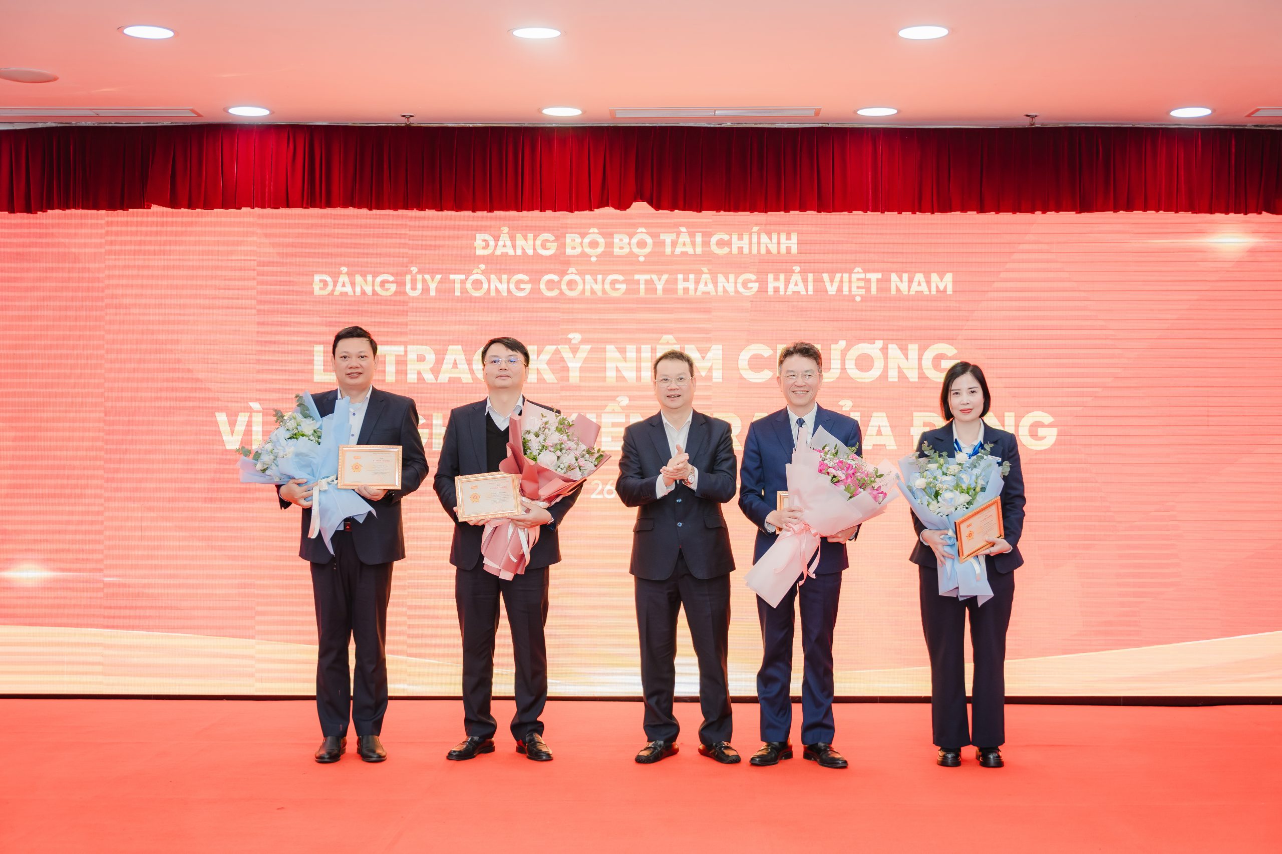 Đồng chí Nguyễn Mạnh Hùng, Phó Chủ nhiệm Ủy ban Kiểm tra Trung ương trao kỷ niệm chương “Vì sự nghiệp kiểm tra của Đảng” cho 04 đồng chí thuộc Đảng ủy VIMC